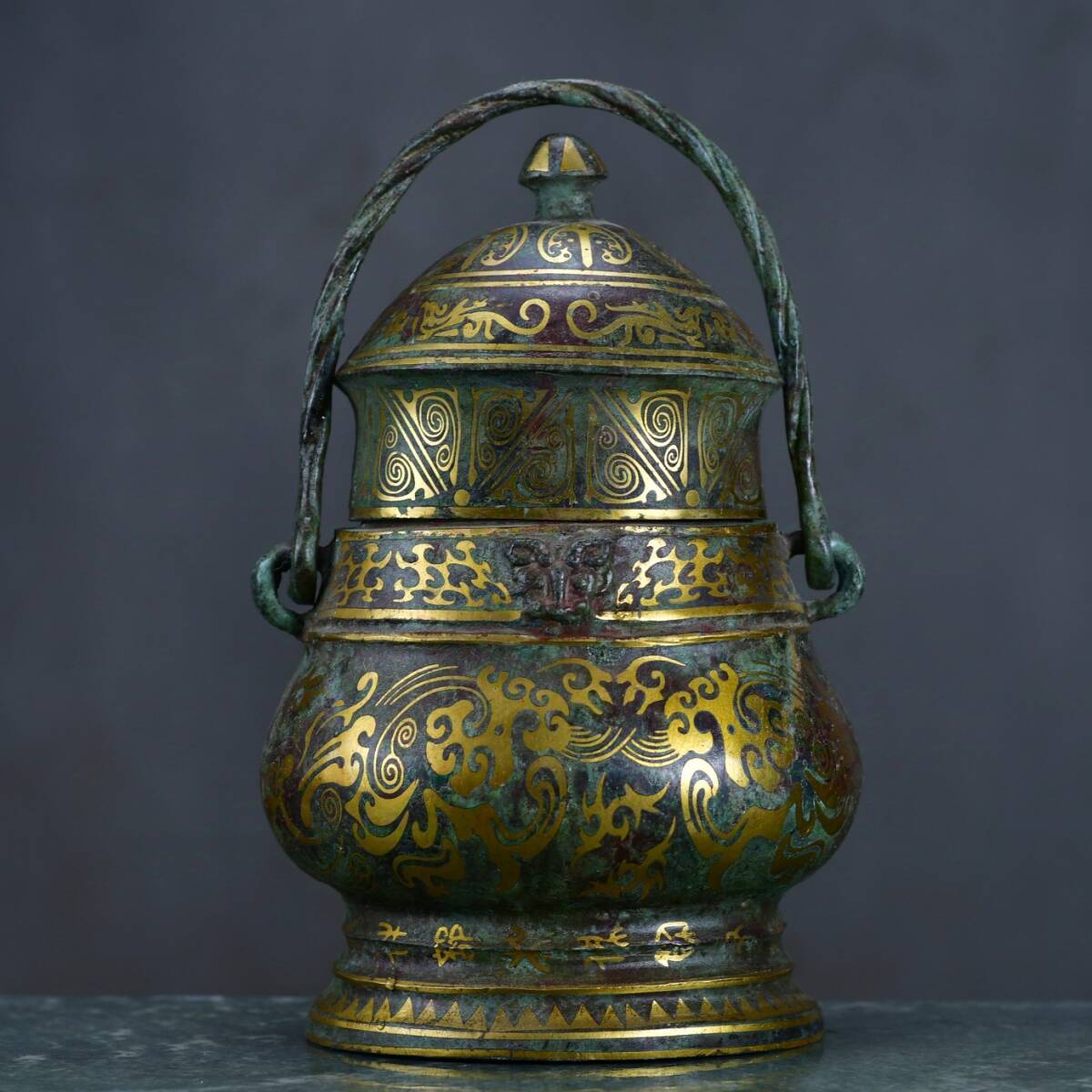 - 館蔵 戰國 青銅器 錯金 提梁壺 古董品 時代物 賞物 貴重 稀少珍品 中国古美術 古美味 蔵出