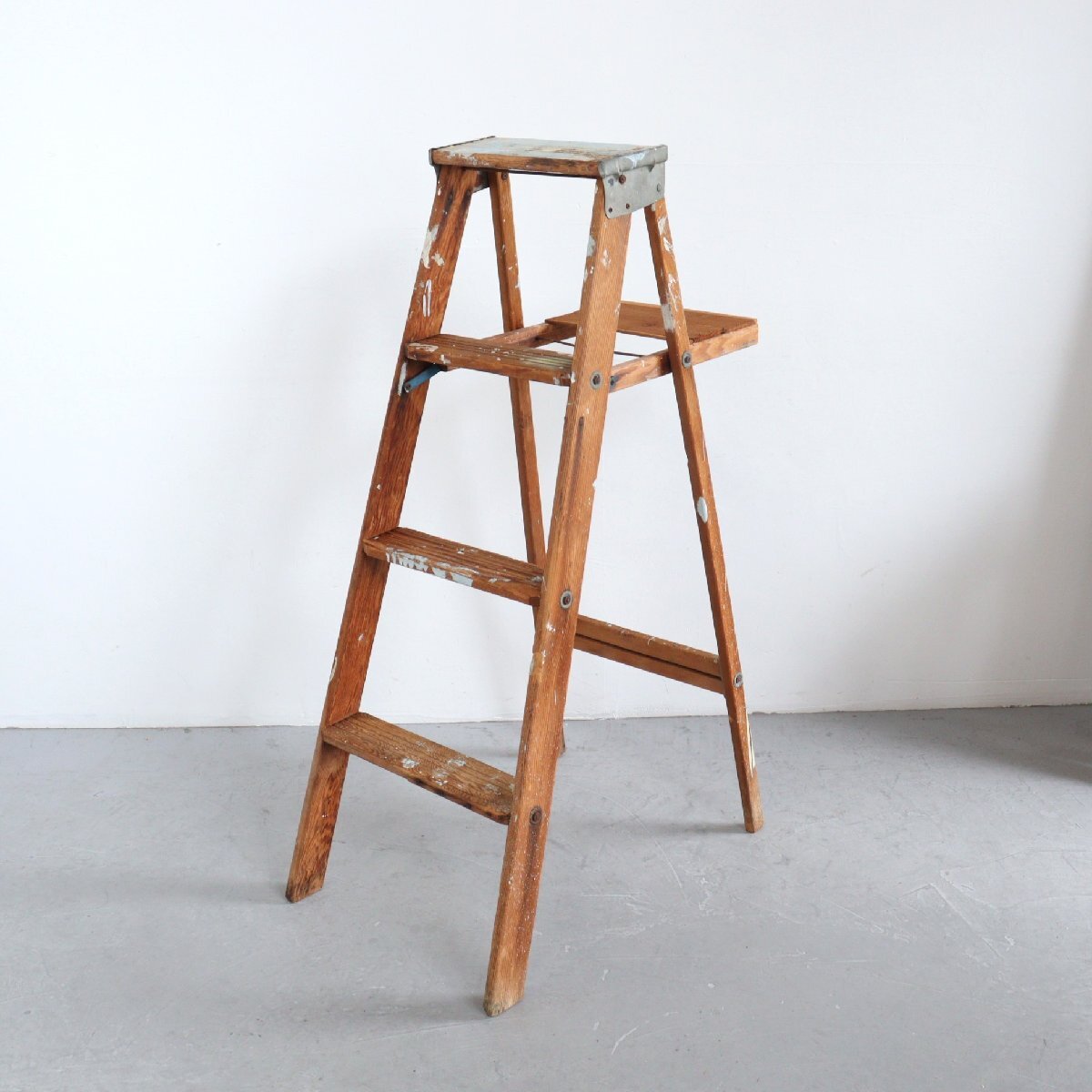 > アメリカ ヴィンテージ 4段 脚立 / 木製ラダー stepladder ディスプレイ 店舗什器 ガーデニング アンティーク 雑貨 #606-25-172-13