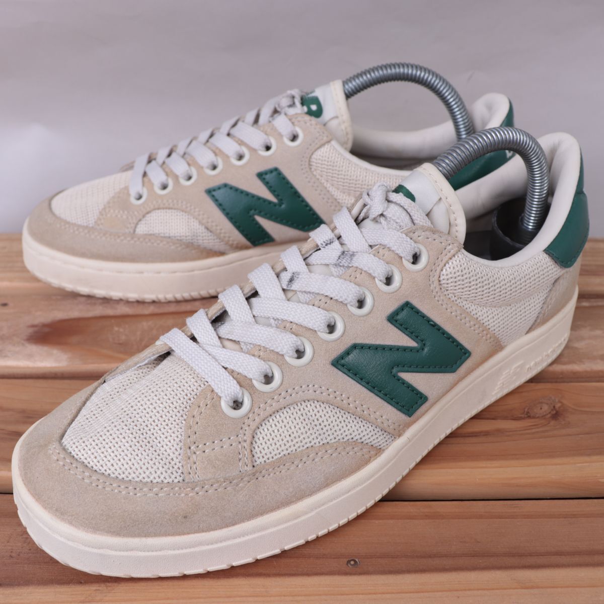 > z2926【PROCTCCG】ニューバランス US7.5 25.5cm/ベージュ 緑 グリーン newbalance メンズ スニーカー 中古