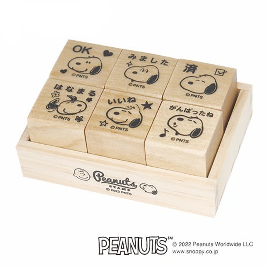 > @【即決】★スヌーピー スタンプセット★こどものかお 6P SNOOPY PEANUTS はんこ 木製 ケース付き ラバースタンプ 評価印 // 2280-001