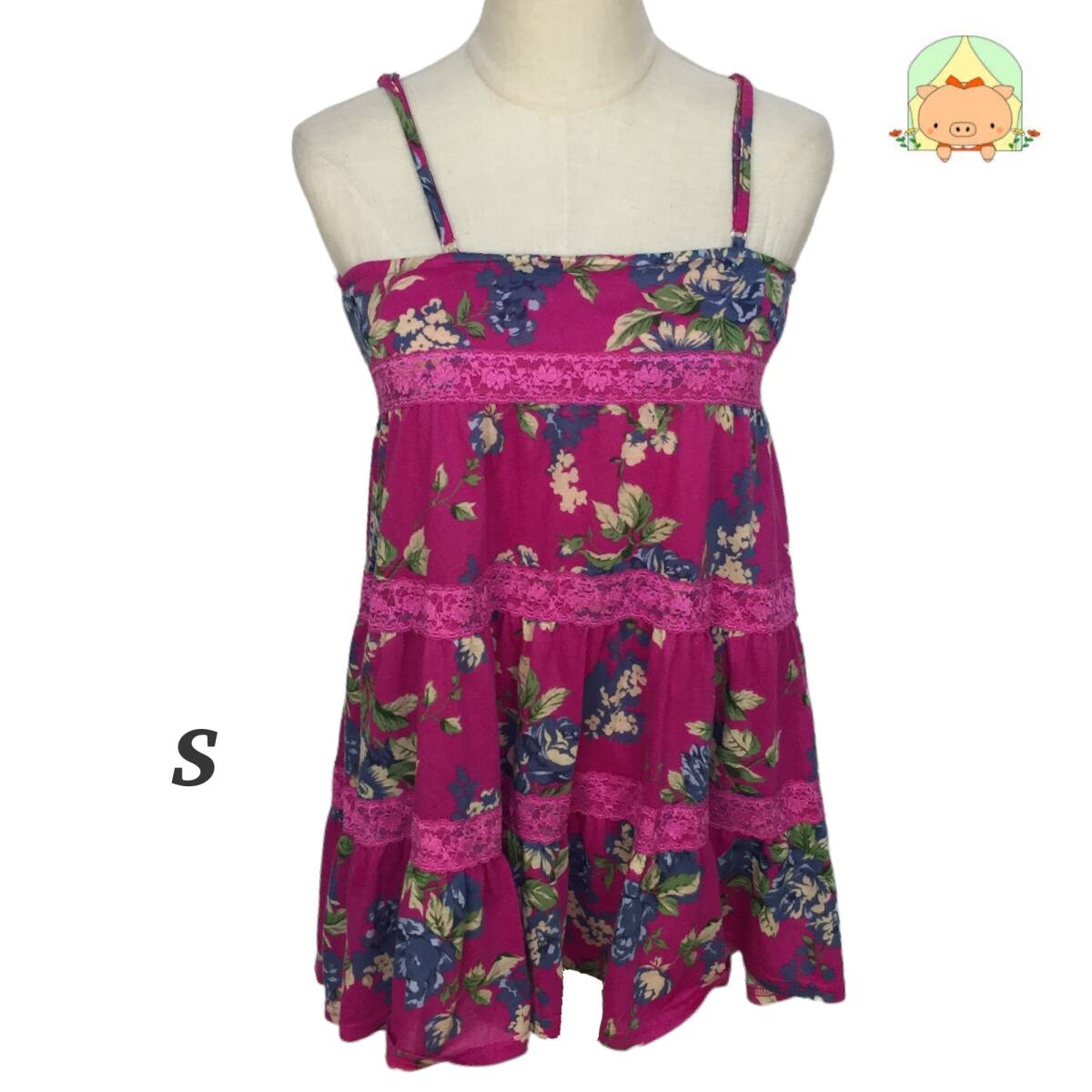 > フラワー柄キャミワンピース S ピンク系 レース切替 夏 リゾート 体型カバー 可愛い ぷーちゃんサポート CA0182