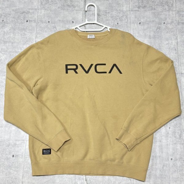 - RVCA ビッグロゴ プリント スウェット トレーナー 裏起毛 ベージュ ルーカ デカロゴ ロゴパッチ ワッペン Sサイズ サーフ 石瀬7575
