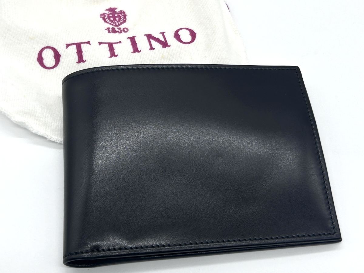 - 【R752】未使用 保管品 OTTINO オッティーノ 二つ折り レザー 財布 黒 ブラック b