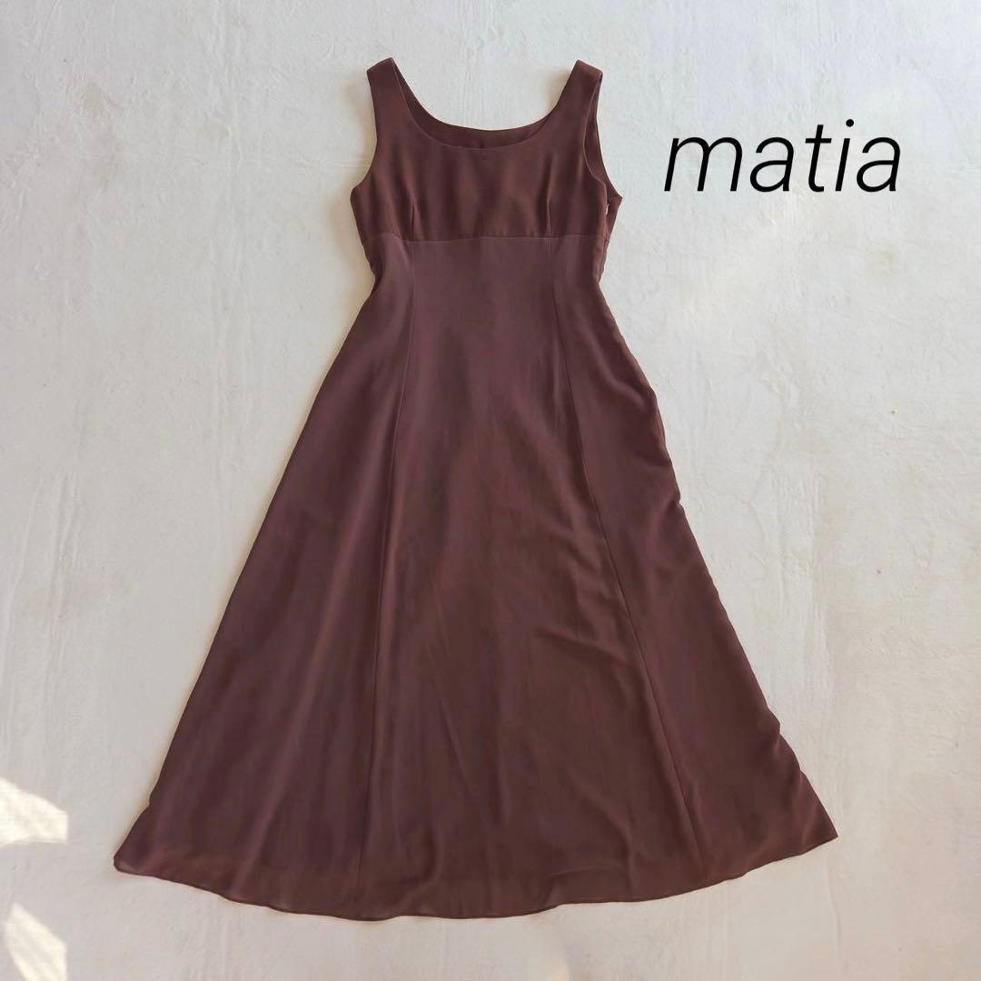- マティア Matia ロングワンピース S相当 9AR ノースリーブ ブラウン
