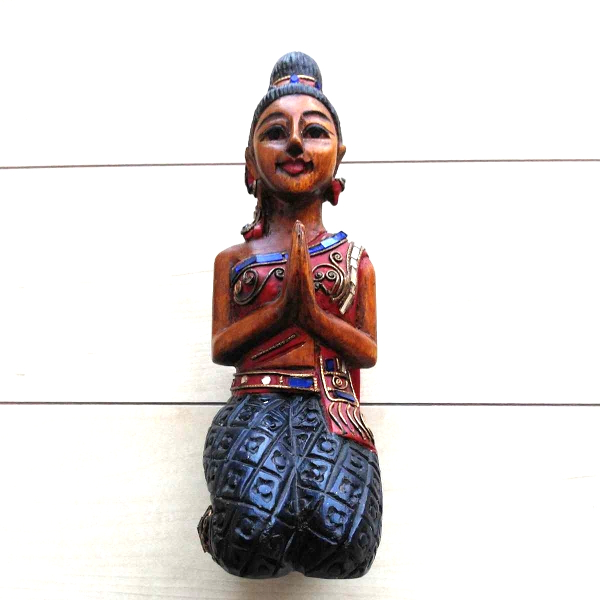 - ■『微笑みの国Thaiの木彫人形(Sawadika!)』置物1体。座高約26㎝。失礼乍ら体重500g。Sawadika!=お早う御座います(女性的な謂い方)。