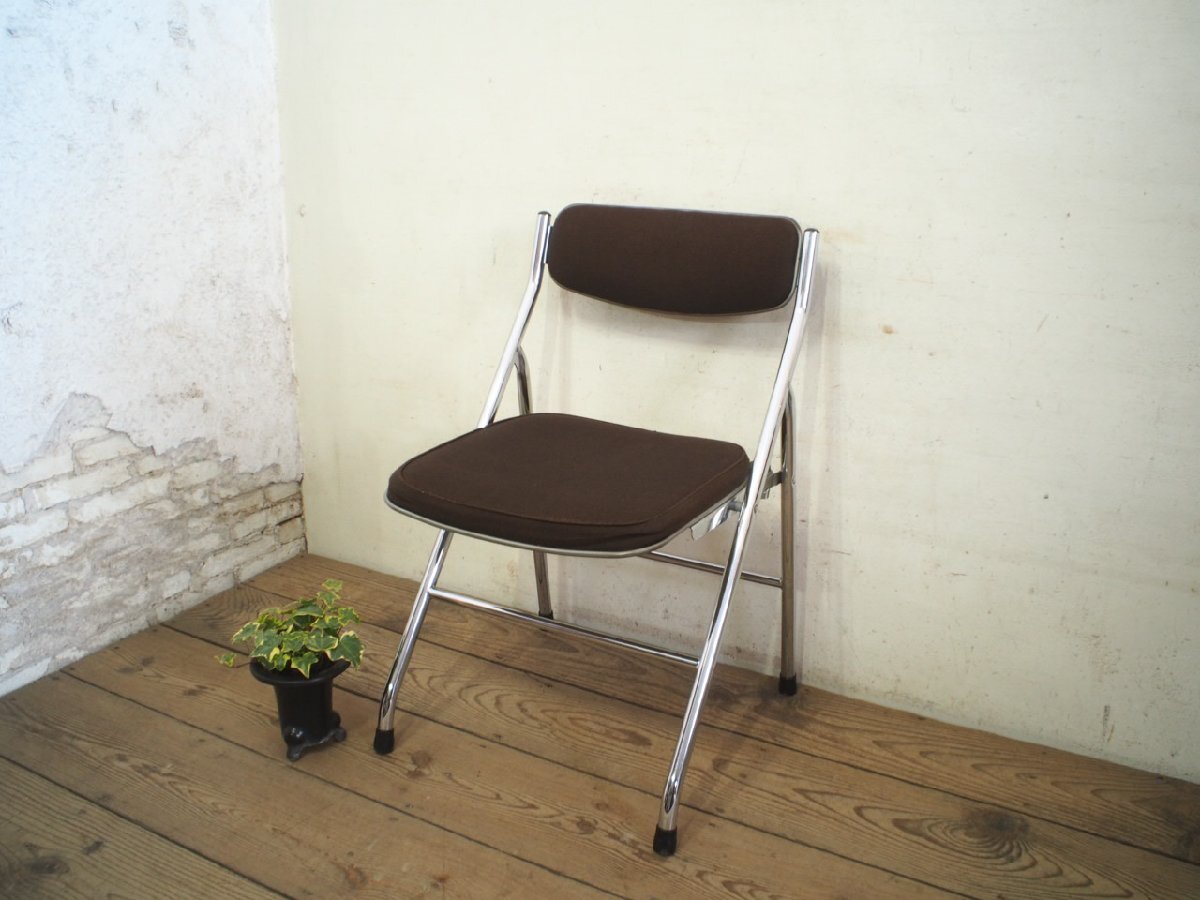- ユC0601◆①ビンテージ◆インダストリアルデザインのレトロな折り畳みチェア◆当時物 工業系 イス 椅子 アイアン カフェ 事務用品A笹4