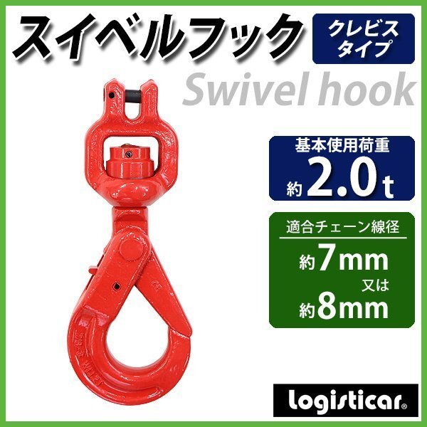 > 送料無料 スイベルフック クレビスタイプ ピンタイプ 使用荷重約2t 約2000kg G80 鍛造 フック スイベル 回転 吊り具 ロッキングフック