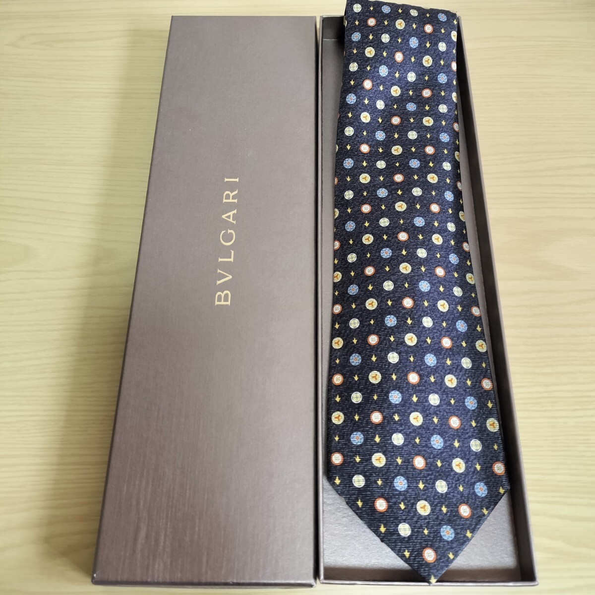 - ブルガリ(BVLGARI)黒マルチカラー丸ミクロ矢印模様セッテピエゲネクタイ