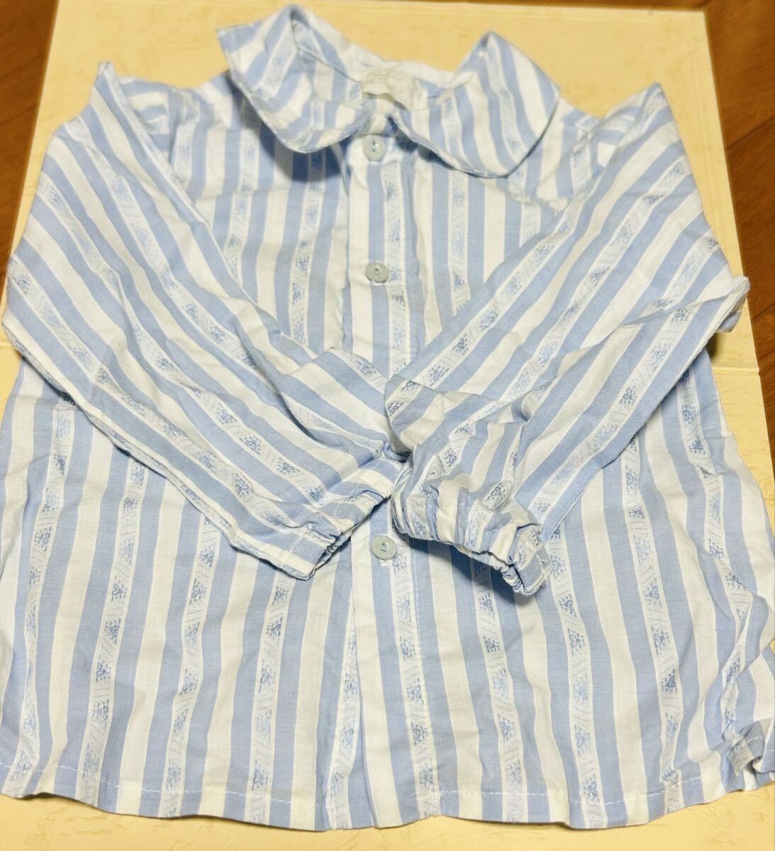 - タルティーヌショコラ 長袖 シャツ 水色 ストライプ サイズ90 日本製