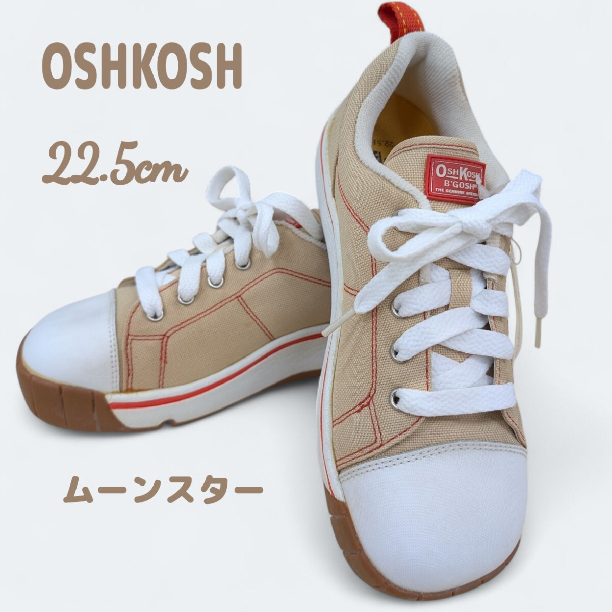 - OSHKOSH オシュコシュベージュひもスニーカー 22.5cm 【訳あり】