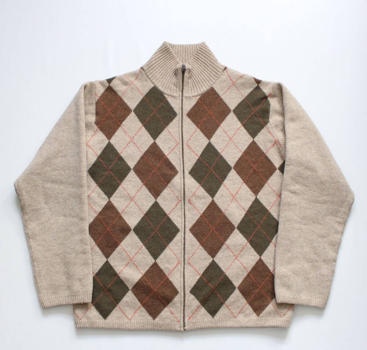 - 【 CHAPS RALPH LAUREN チャツプス ラルフローレン 】アーガイル リバーシブル ジップ セーター M ジャケット ブルゾン 90s' オールド古着