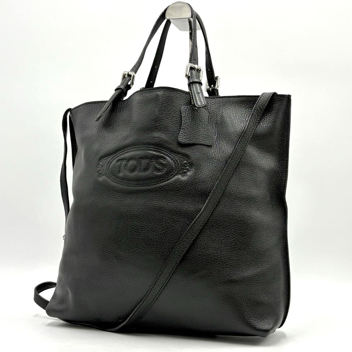 - 1円/極美品●TOD'S トッズ ロゴ型押し 2way トートバッグ メンズ ビジネスバッグ ショルダー ブラック 黒 レザー 本革 A4肩掛け可