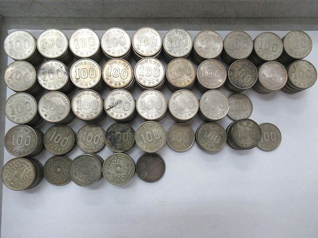 > ☆1円~昭和 貨幣 硬貨 100円銀貨 稲穂/鳳凰/東京オリンピック 計356枚 総額35,600円 総重量約1711g 古銭 昭和32年/33年/34年/36年/39年等