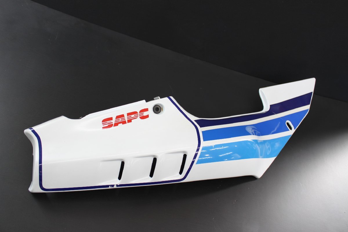RGV250ーΓ(VJ22Aー1041**)SPの実働車から取り外しの純正シートカウル右側の中古です。前側に小さい亀裂有り、キズ、汚れ等ありますがワレ、曲がり等は無く使用可能品です。中古につきノークレーム、ノーリターンでお願いします。他にも同車種、その他車輌からの取り外しの部品を多数出品しますのでご覧ください。発送は 元払いにて発送いたします(落札後、ご計算致します。基本的にはヤマト運輸です。)200サイズを超えるものは佐川急便着払いにて発送致します。