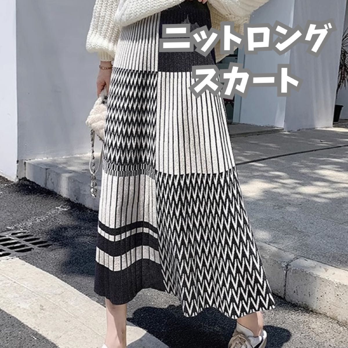 - スカート ロングスカート ロング 390 2XL 3L 幾何学模様 パッチワーク風 ニット