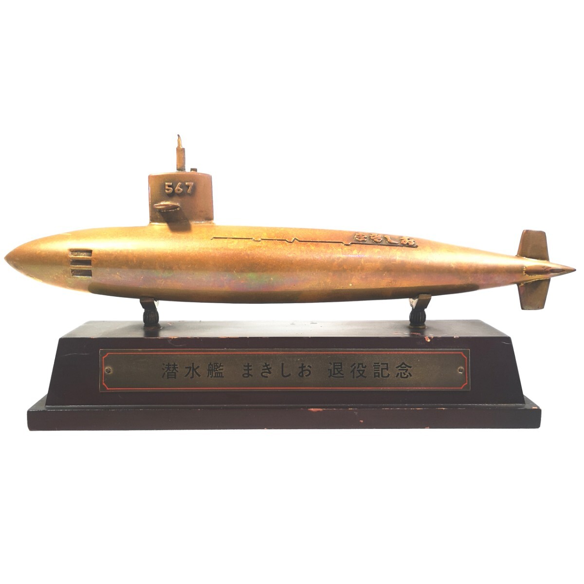 - 超希少 海上自衛隊 まきしお潜水艦 退役記念 大型置物 / 潜水艦 ミリタリー 記念品 昭和 当時物 金属製
