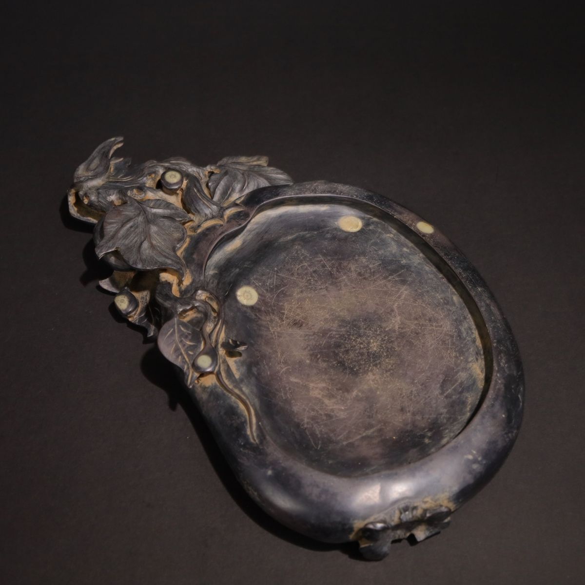 - 永し 清時代 馬會伯銘 端石彫 福瓜硯 天然石眼 極細工 端渓硯 書道具 文房具 置物擺件 古美術品 時代物 古董品 収集 旧家蔵出 中国唐物