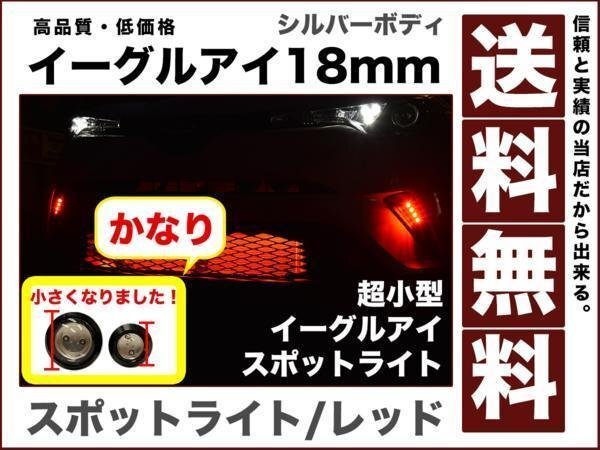 - 超小型 超薄型LEDスポットライト イーグルアイ18mmレッド ボルト型 デイライト ブレーキ連動1.5wシルバー 防水2個セット12V eagle-eye-mini