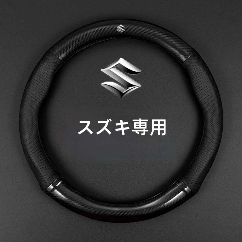 - 送料無料 スズキ 専用 ハンドルカバー ステアリングカバー 円型 本革 カーボン調