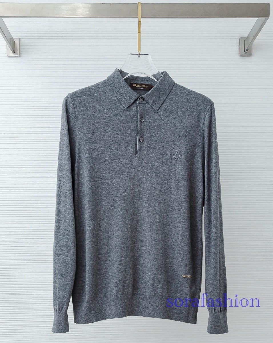 > Loro Piana ロロピアーナ メンズニットポロシャツ 長袖T-シャツ グレー 56サイズ トップス ニットカットソー ウール・綿 紳士服 秋冬物