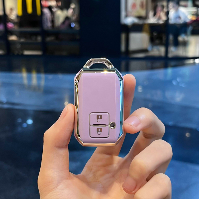 - スズキSUZUKI スマートキーケース TPU キーカバー ジムニー スイフト ハスラー ワゴン ソリオ パープル×シルバー