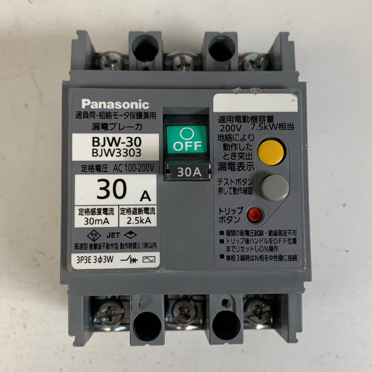 - Y8-744 漏電ブレーカー Panasonic パナソニック BJW-30 BJW3303 30A 愛知 60サイズ