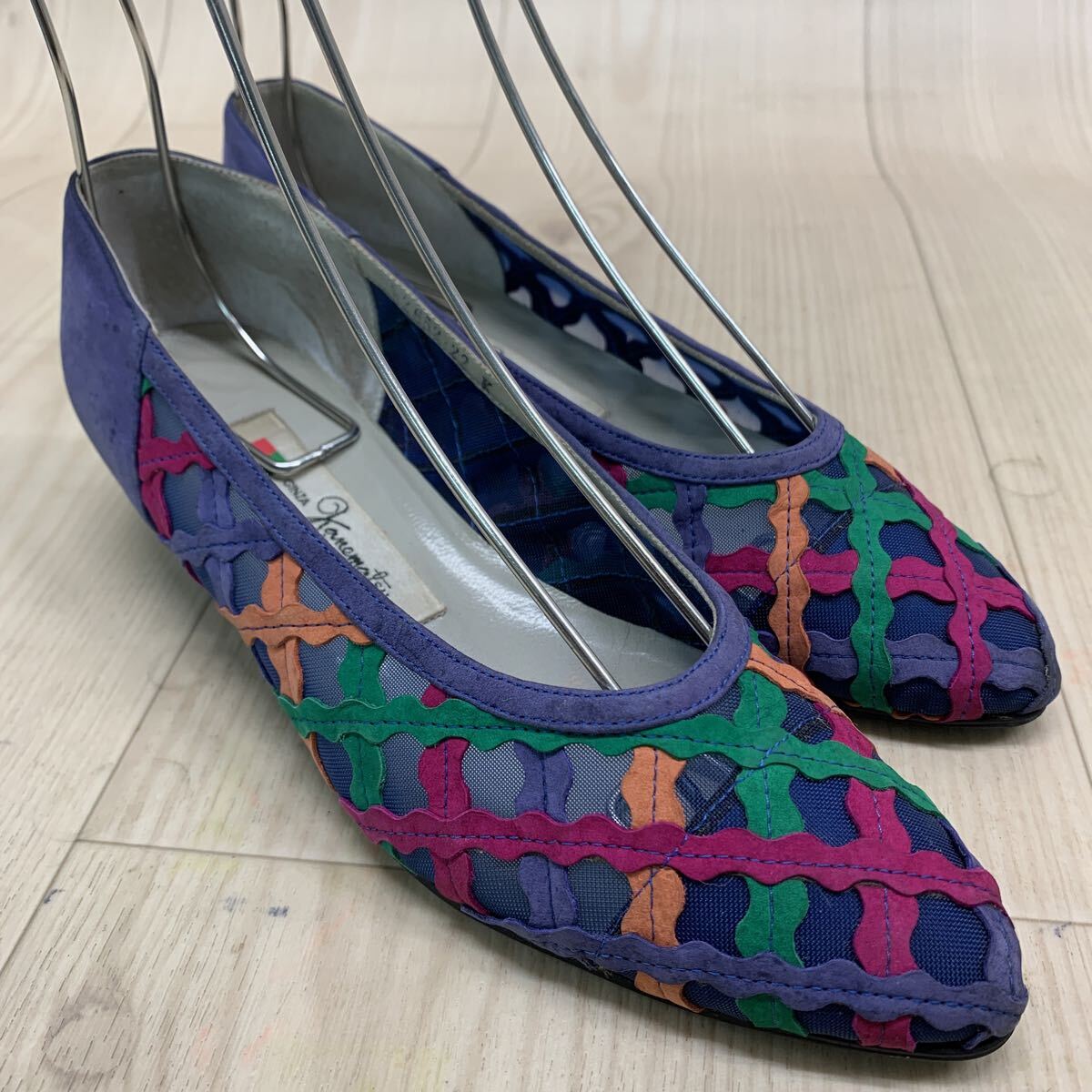 - N12 FN-251010-1549 GINZA Kanematsu 銀座かねまつ メッシュ パンプス ヒール パープル ピンク グリーン オレンジ レディース 22cm