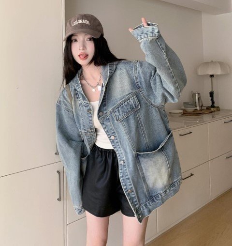 - Gジャン ジージャン ジーンズ 長袖ジャケット アウター ゆったり カジュアル フード付き デニム S ライトブルー