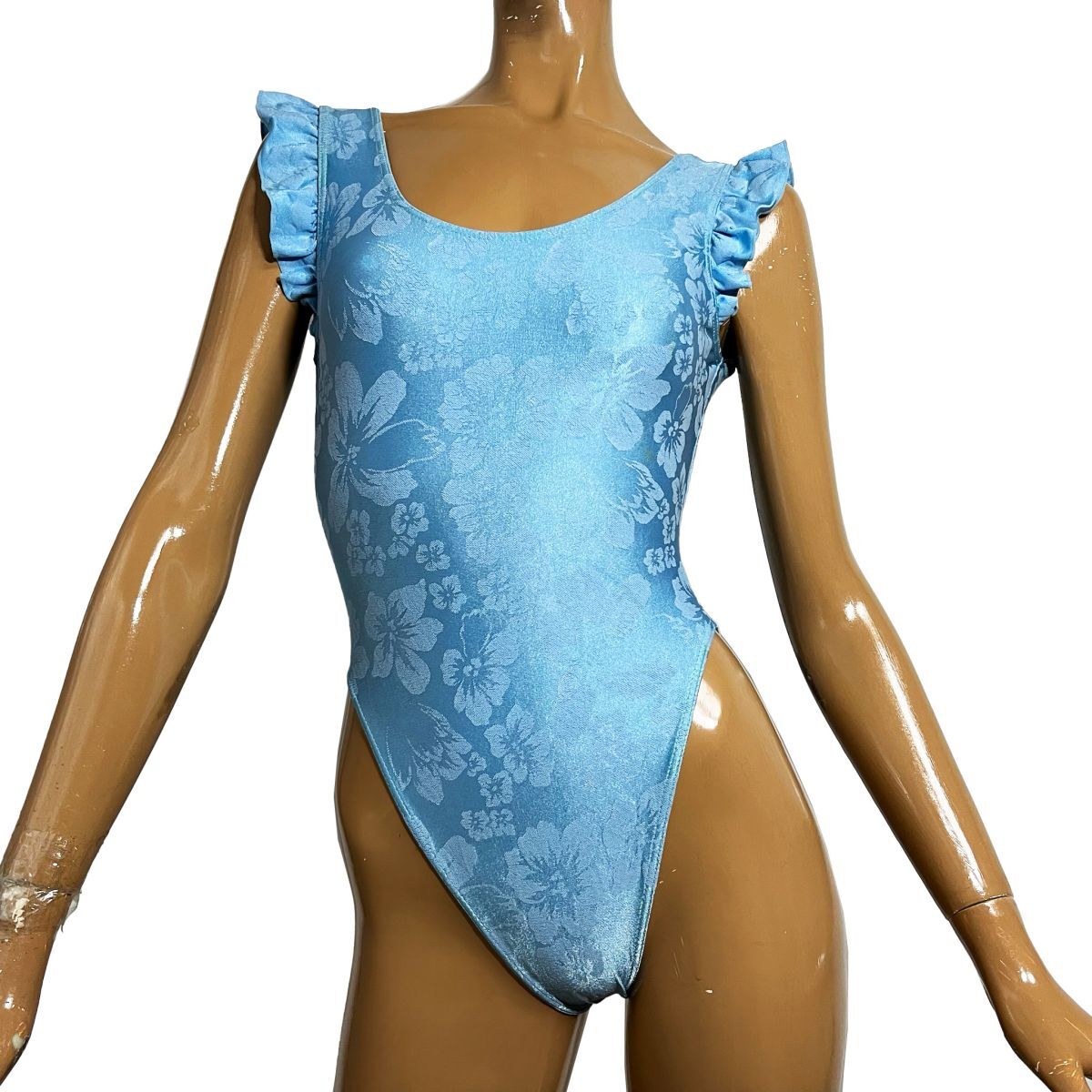 - 2 ナターシャチャコットレオタード(M程度)★光沢水色・ハイレグ・伸縮性あり