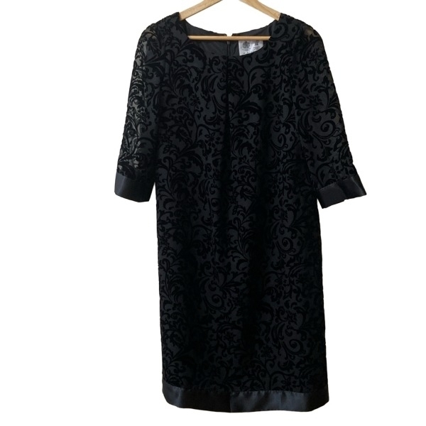 > オースチンリード Austin Reed サイズ38 L - 黒 レディース クルーネック/七分袖/ロング/ベロア/花柄/シースルー ワンピース