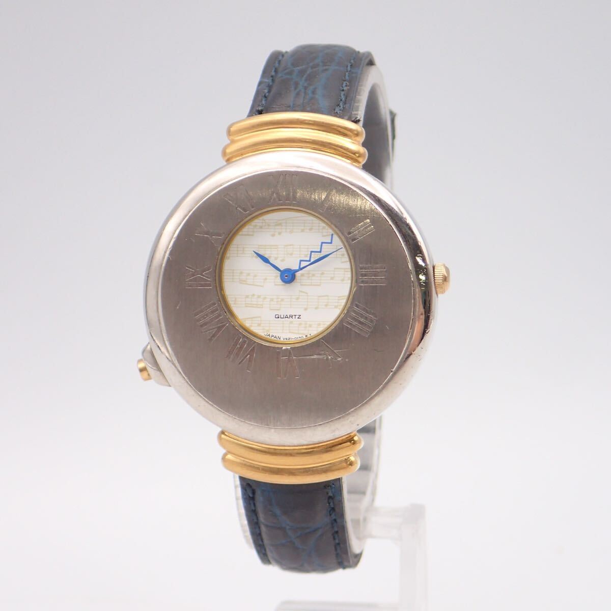 - お09386 SEIKO メロディ V421-0040 RO クオーツ 腕時計 楽譜柄 クォーツ 動作確認済