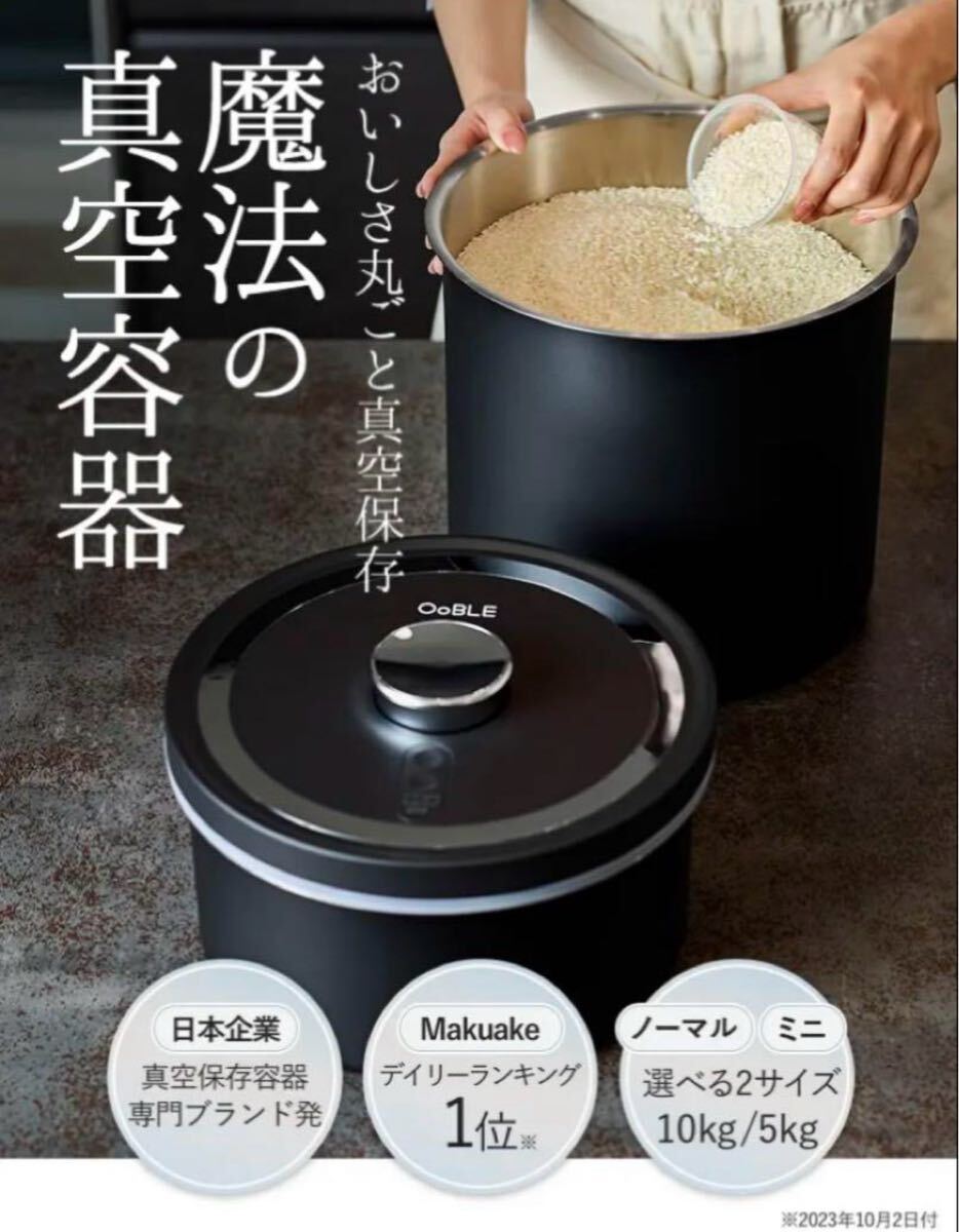 - 新品・未開封 10kg 13L OobLE 真空米びつ ノーマルサイズ ブラック