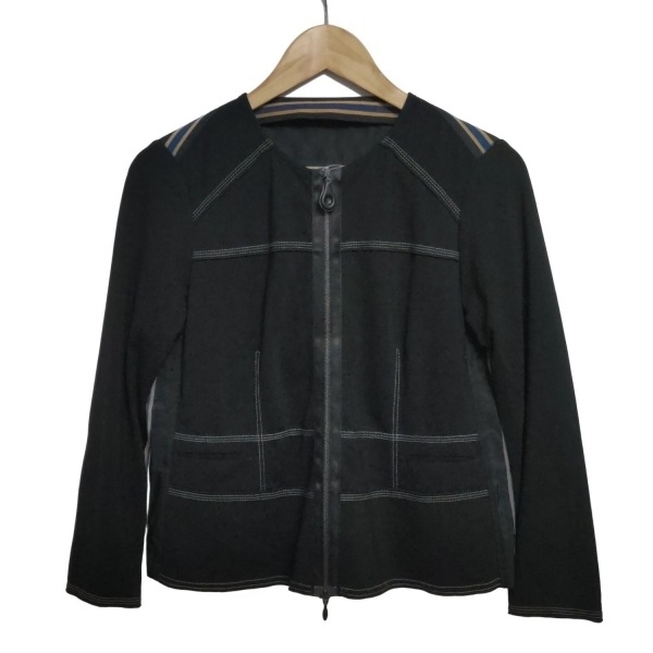 > ヒロココシノ HIROKO KOSHINO サイズ40 M - 黒×ネイビー×ベージュ レディース 長袖/ノーカラー/異素材切替/ボーダー/ジップアップ/春/秋