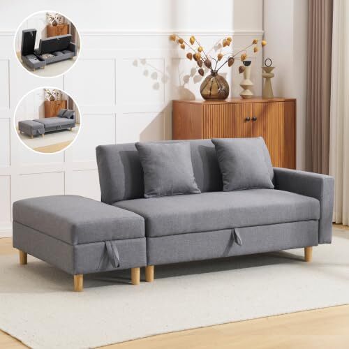 - ソファカチン ソファー ソファーベッド 3P 3人掛けソファ 5waysアレンジ 肘掛け 収納付き オートマン付き 折り畳み式 大容量の収納
