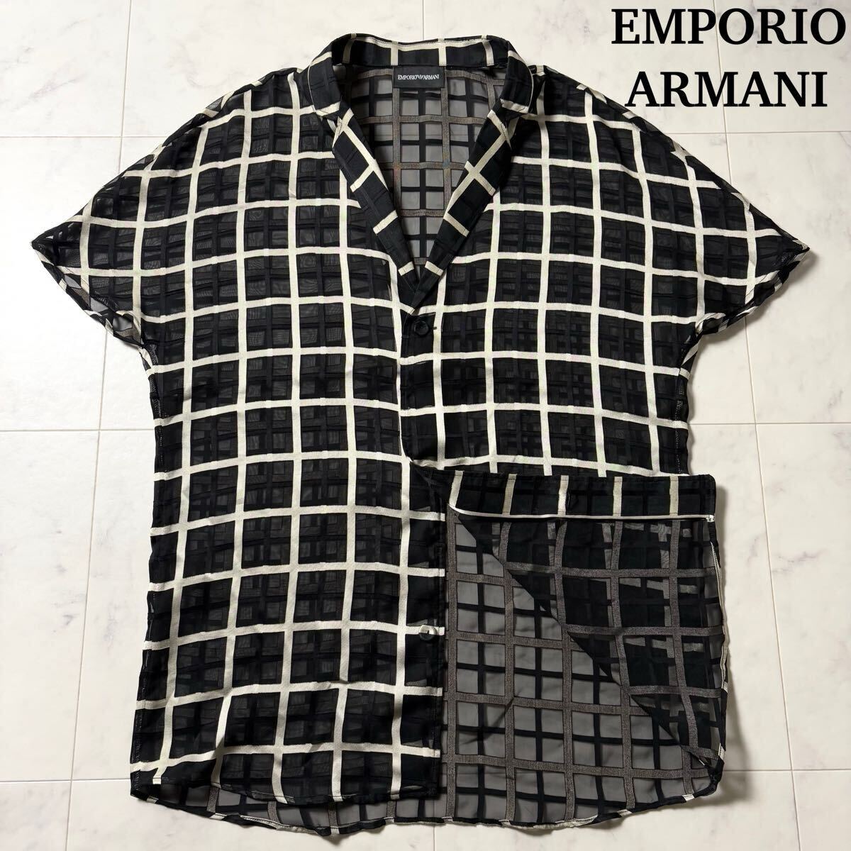 > EMPORIO ARMANI エンポリオアルマーニ シアー 半袖シャツ 羽織り チェック格子柄 サイズ40/L相当 ブラック 黒 メンズ
