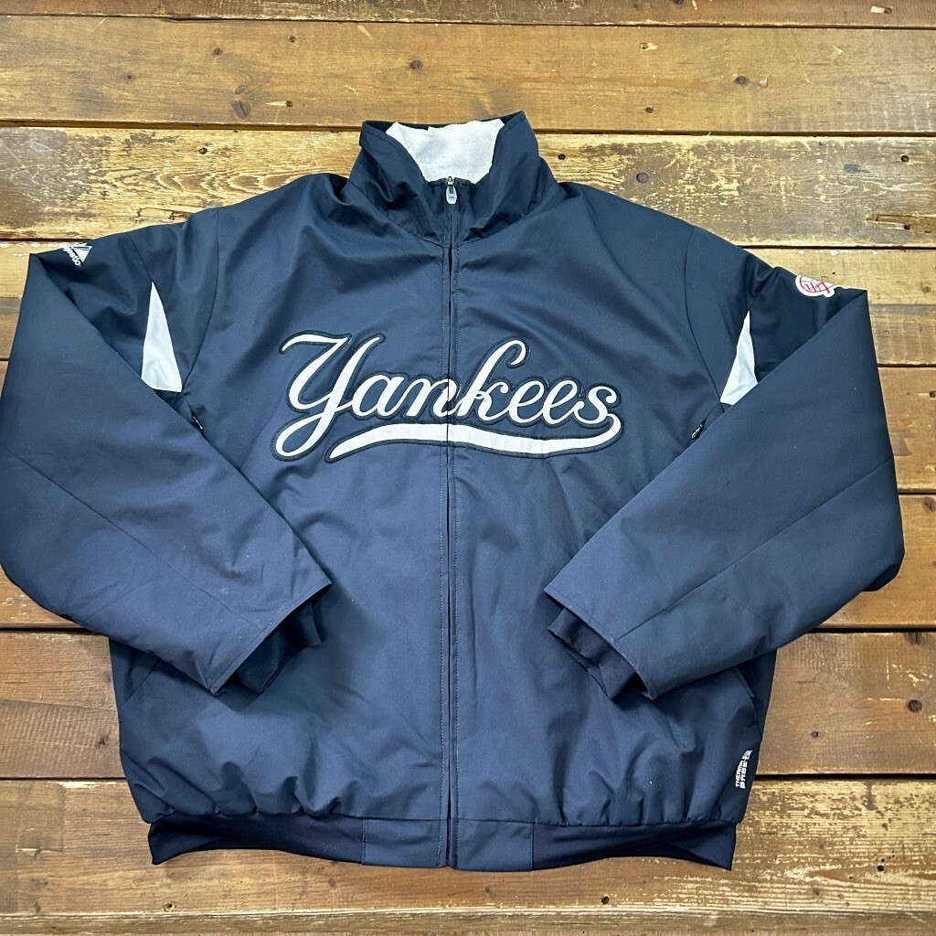 > 現地購入 MAJESTIC社 MLB NY YANKEES/ ニューヨークヤンキース スタジャン ブルゾン メンズ Lサイズ ブラック ワッペン刺繍プリント USED