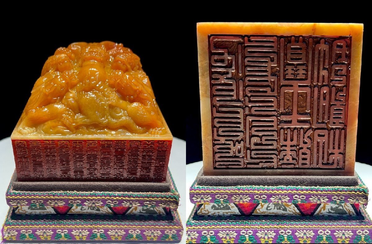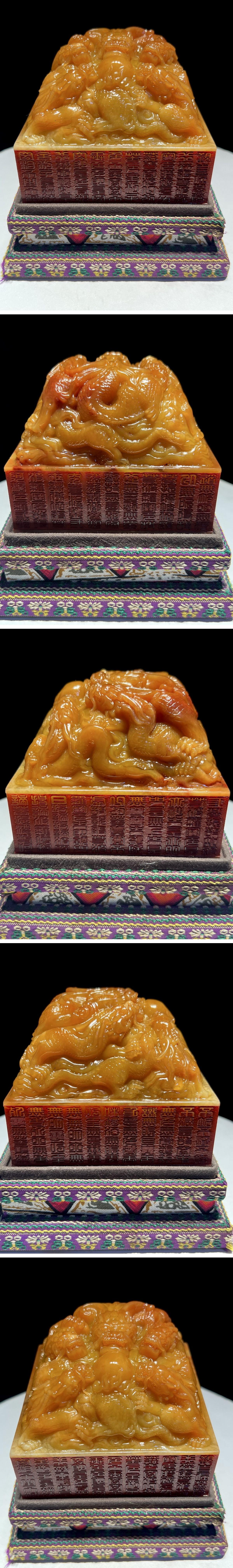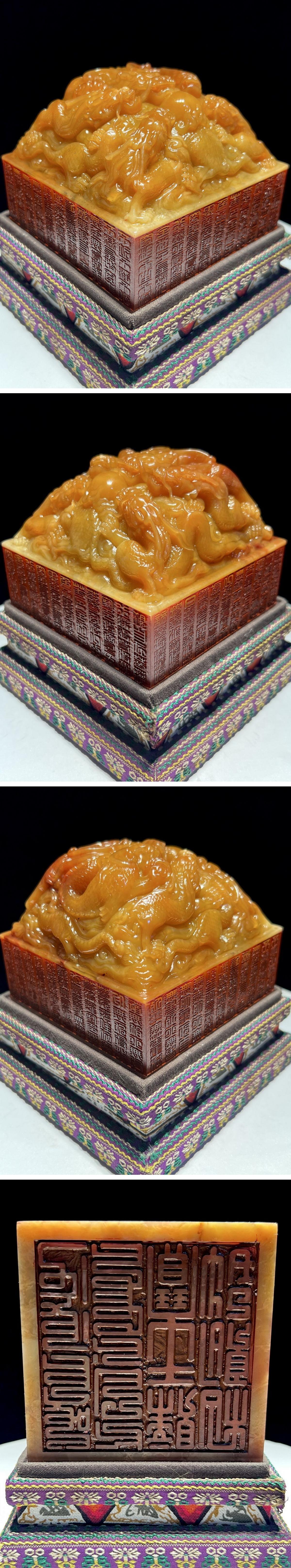> 【清】某有名オークション購入 清時代 寿山田黄石 五龍戯珠紋印章 材質保証古置物 古擺件 古美術 時代コレクション7L10-FD8