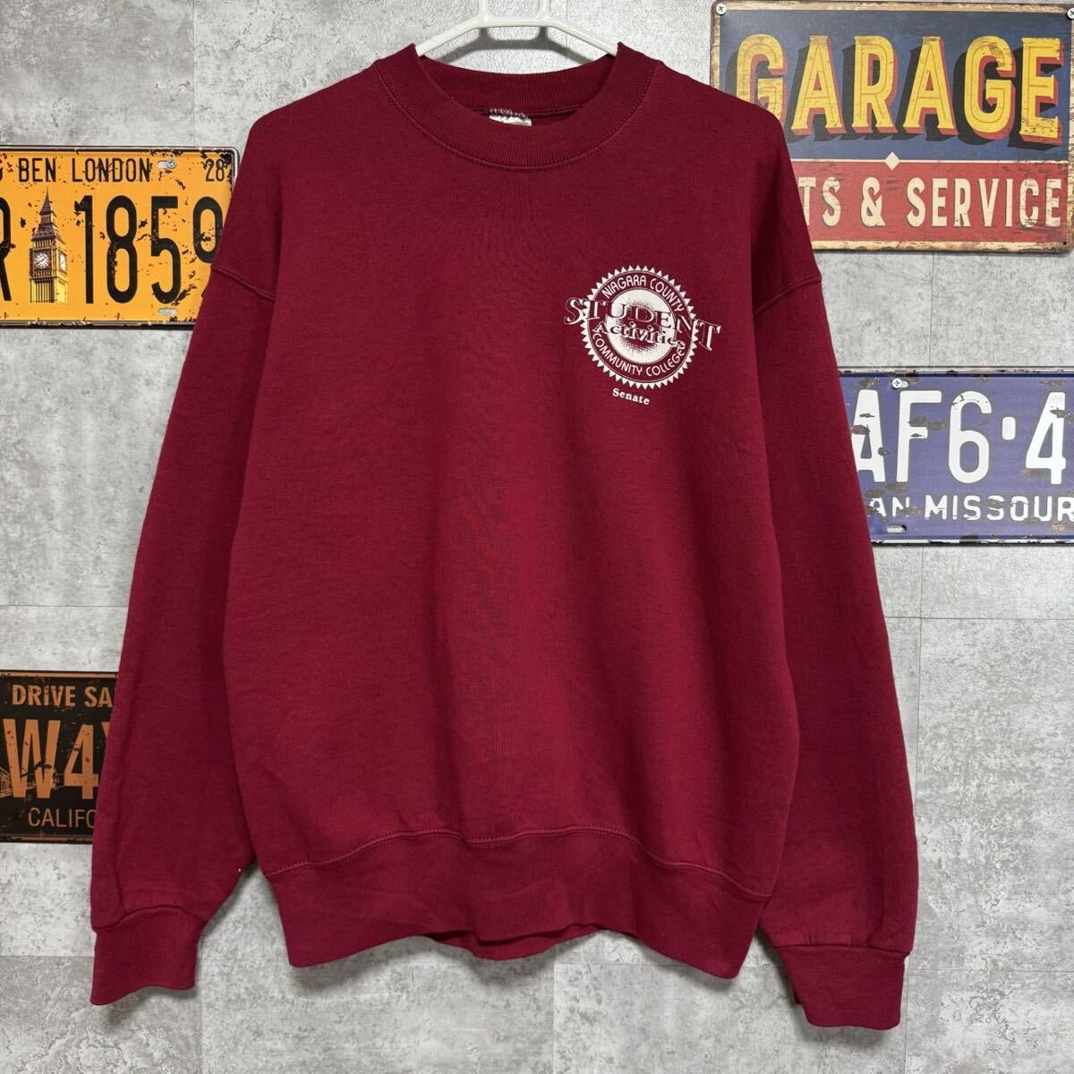 > FRUIT OF THE LOOM USA製 カレッジスウェット 赤 L Student Senate 裏起毛 90s フルーツオブザルーム 古着