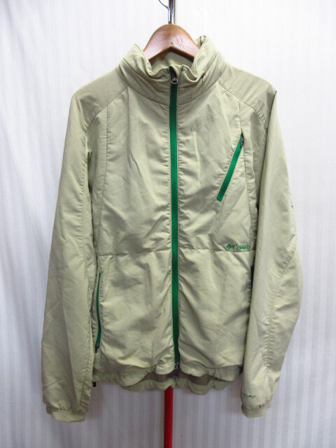 > コロンビア OMNI-SHIELD ナイロンジャンパー Lサイズ ベージュ緑 ロゴ刺繍ウインドブレーカー アウトドアジャケット ブルゾン 10221