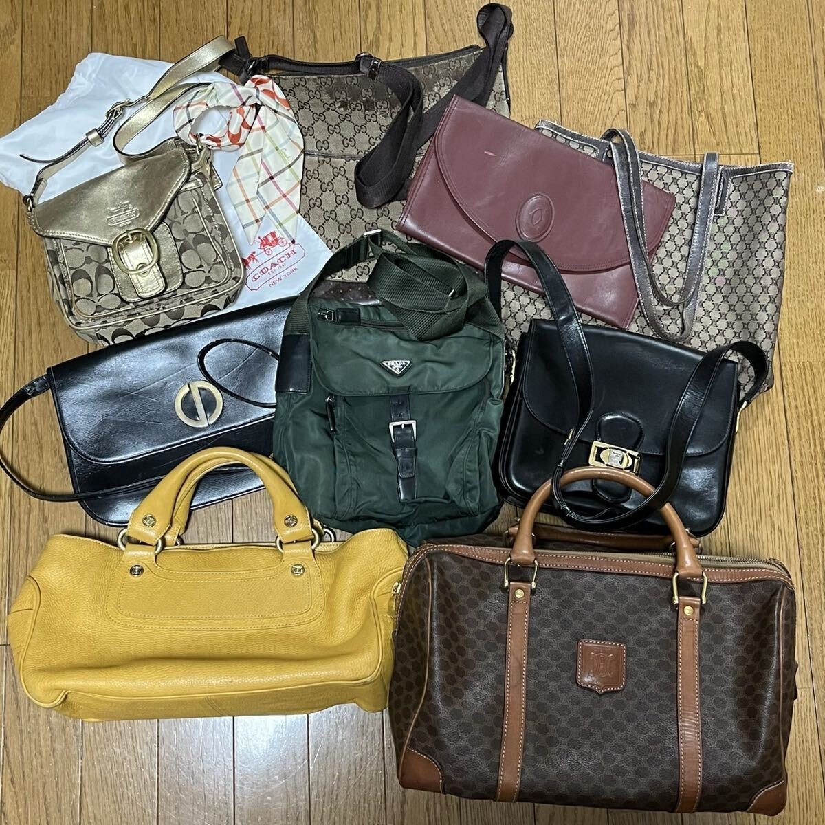 > 1円~ 9点 まとめ セット セリーヌ プラダ ディオール グッチ カルティエ コーチ ショルダーバッグ ハンドバッグ レザー ナイロン PVC