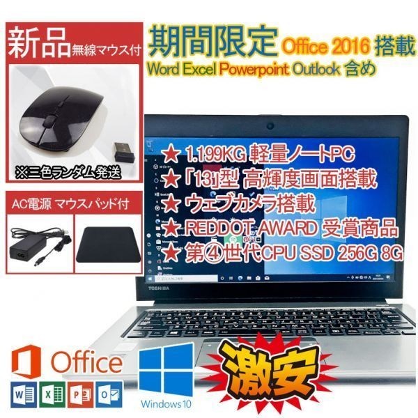 - 第四世代 CPU Core i5 新品SSD Windows 10 Office 2016 ウェブカメラ搭載 東芝 軽量1.1KG ノートPC ワード エクセル パワーポイント 再入荷