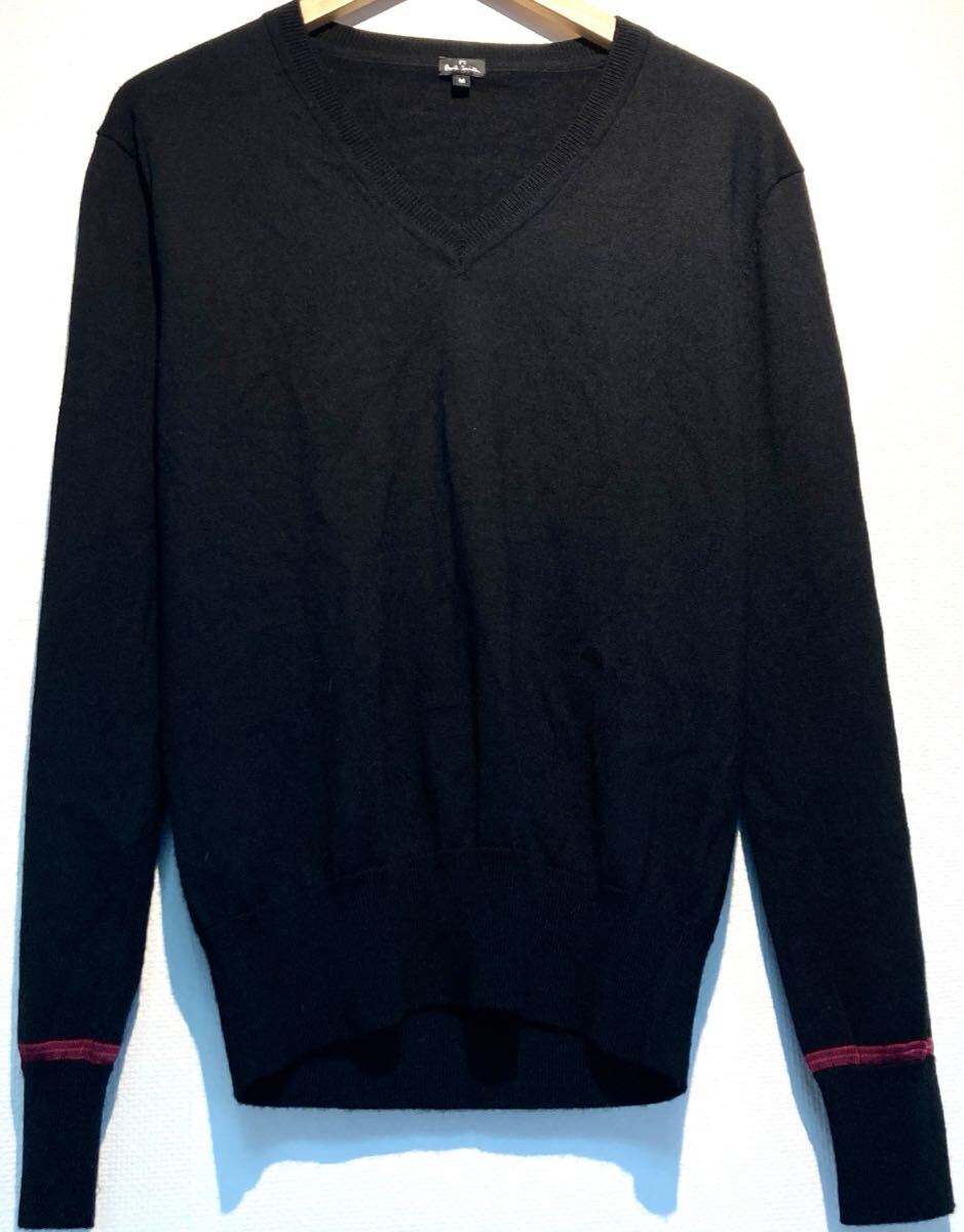 > Paul Smith★ニット★セーター★ラインデザイン★アーム★ショルダー★ウール生地★ポールスミス★定価18,000円★ブラック★黒赤★極美品