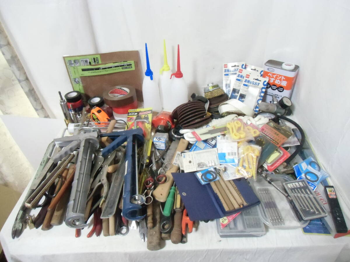 > □ 工具等まとめ売り 約160点以上 ドリル刃 砥石 バール ソケットレンチノギス 鎌 鋸 墨つぼ 安全帯 他 ☆