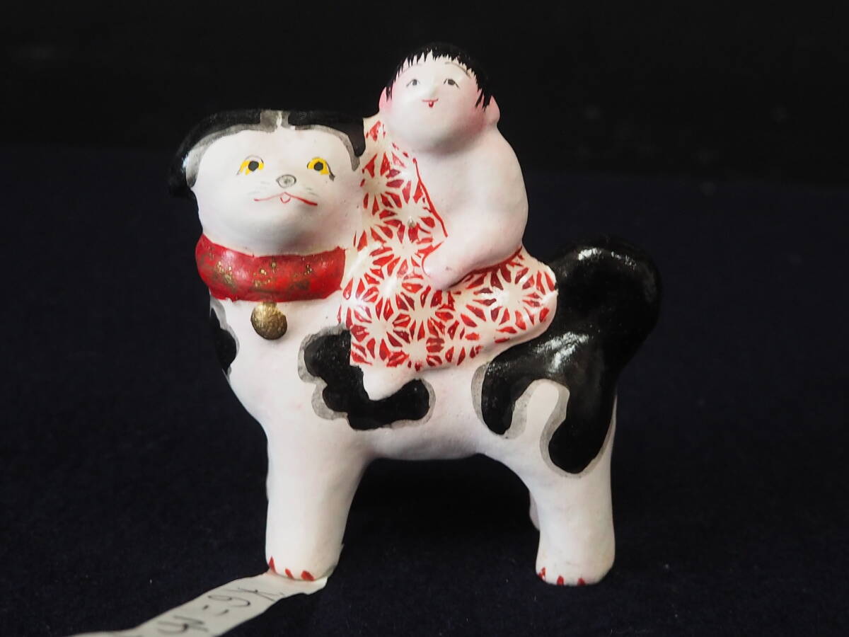 - 土人形 中野土人形 犬のり子供(中野)戌 古い 日本人形 郷土玩具 民芸品 縁起物 置物 インテリア 昭和レトロ