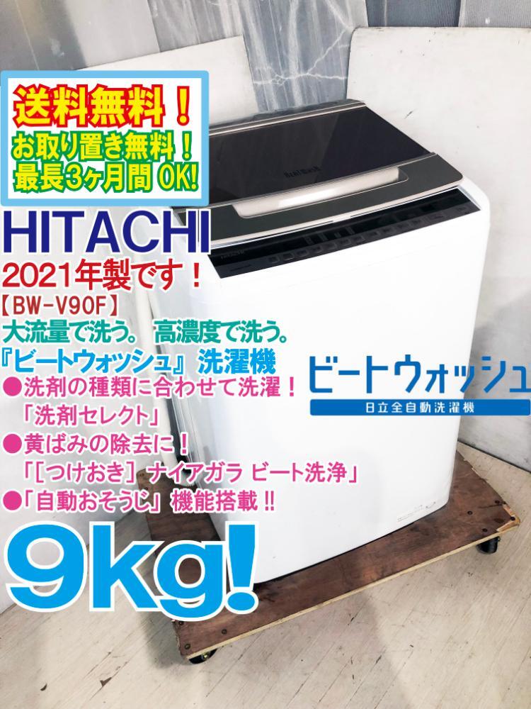 > 送料無料★2021年製★極上超美品 中古★日立 9㎏ ビートウォッシュ!洗剤セレクト★大流量ナイアガラビート洗浄 洗濯機【BW-V90F-N】FOYY