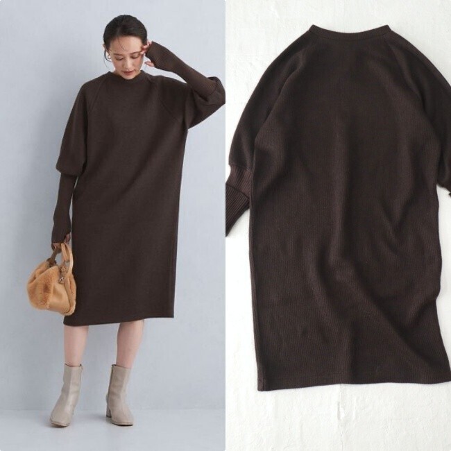 > #240490【送料無料】 美品*1.1万 グリーンレーベル|ニットワンピース♪チョコ( green label relaxing)