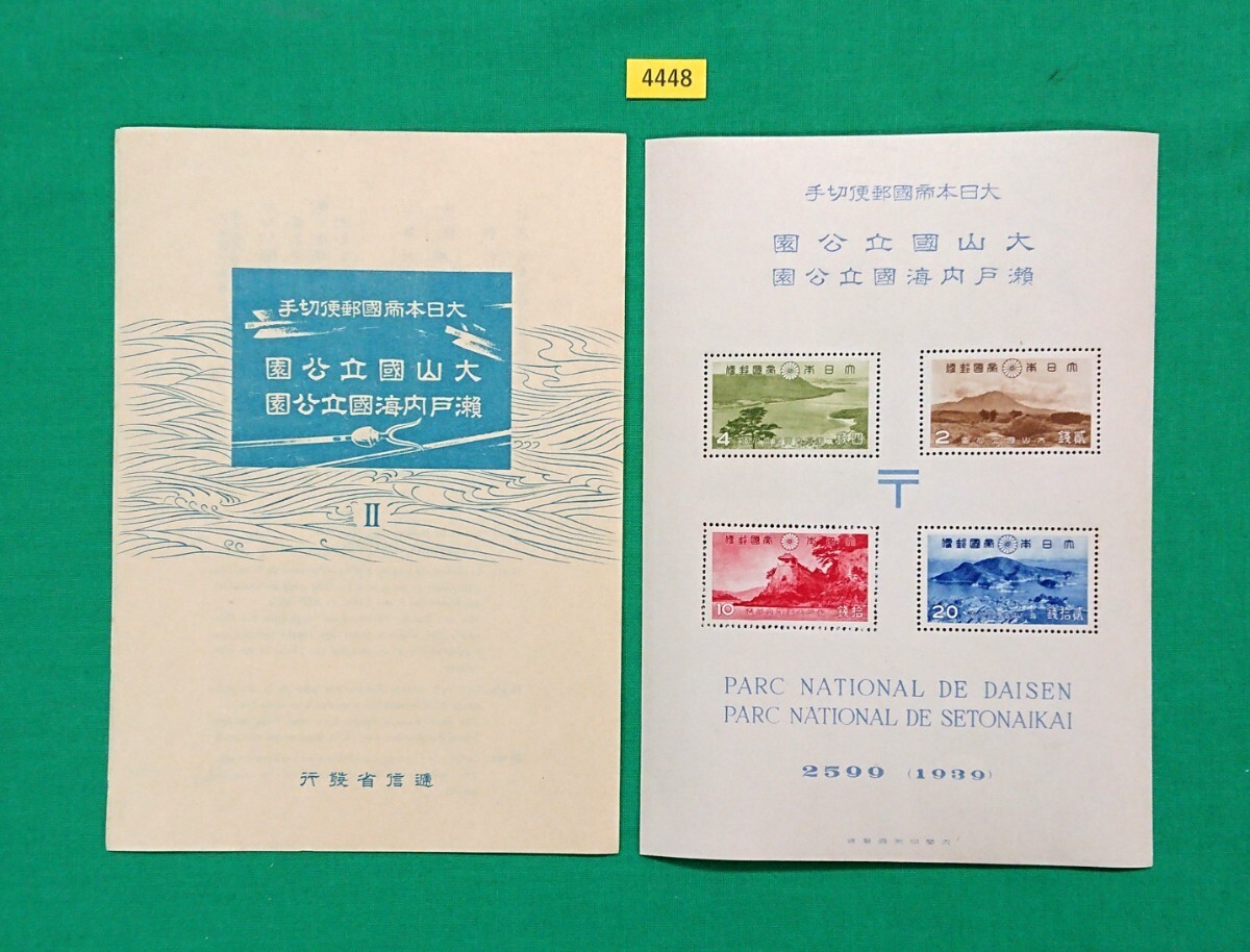 > 高品質!大山・瀬戸内海国立公園/タトゥ付小型シート/1939年/第1次国立/NH/極上美品/シミ無/シワ無/糊艶良好/カタログ価格11,000円/№.4448