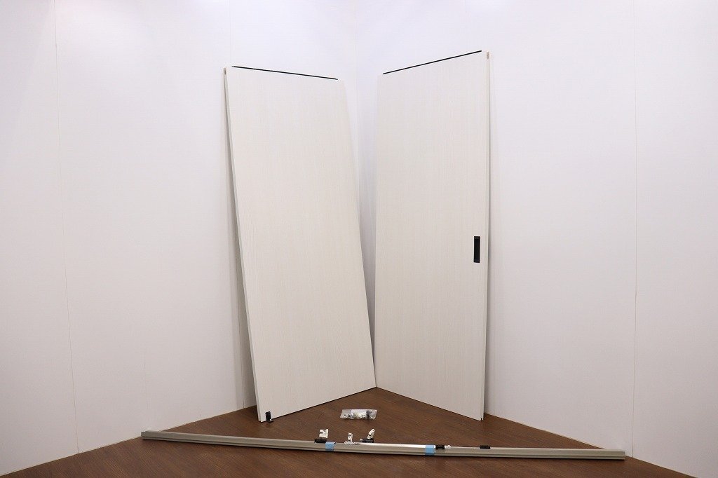 > 【引取限定】J9285◆Panasonic◆引き戸2枚+枠セット◆室内ドア◆ホワイト系◆木目調