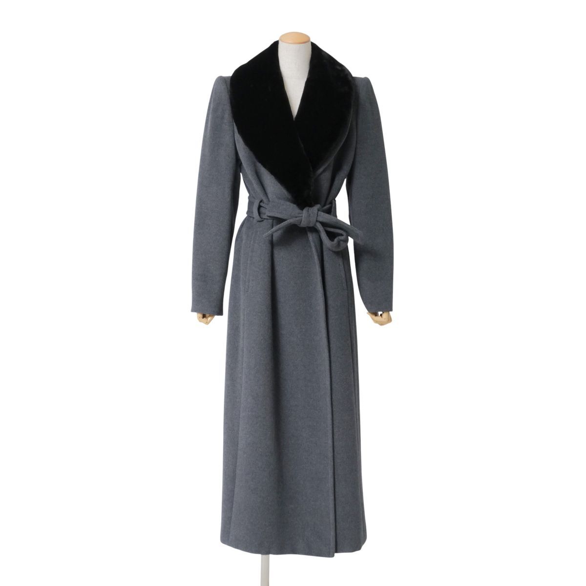 - GS3372≫Yves Saint Laurent イヴサンローラン フェイクファー ロングコート ショールカラー アンゴラ混 ベルト サイズ34 グレー
