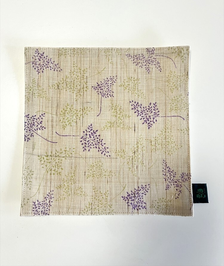 - 花とら●リサイクル小物 麻 小物マット 花瓶敷 大コースター 17cm角 未使用品 美品 紫花 幡 251013